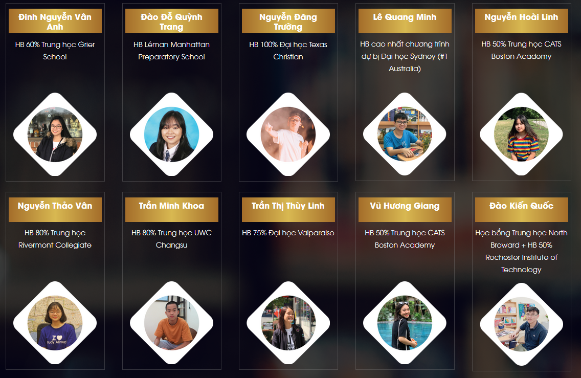 Triển lãm du học Quốc tế 2020 là sự quy tụ của các trường Trung học hàng đầu. Rất nhiều học sinh sau khi tốt nghiệp từ các trường trong danh sách tham dự triển lãm đã đạt học bổng cao và học tập thành công tại các trường đại học danh tiếng của Mỹ như: University of Harvard, University of Chicago, John Hopkins University, University of Washington, Washington State University, Carnegie Mellon University…