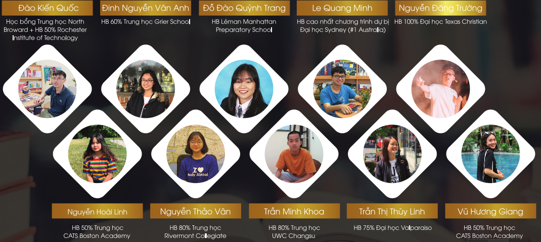 Triển lãm du học bậc Trung học 10/2019 là sự quy tụ của các trường Trung học hàng đầu. Rất nhiều học sinh sau khi tốt nghiệp từ các trường trong danh sách tham dự triển lãm đã đạt học bổng cao và học tập thành công tại các trường đại học danh tiếng của Mỹ như: University of Harvard, University of Chicago, John Hopkins University, University of Washington, Washington State University, Carnegie Mellon University…