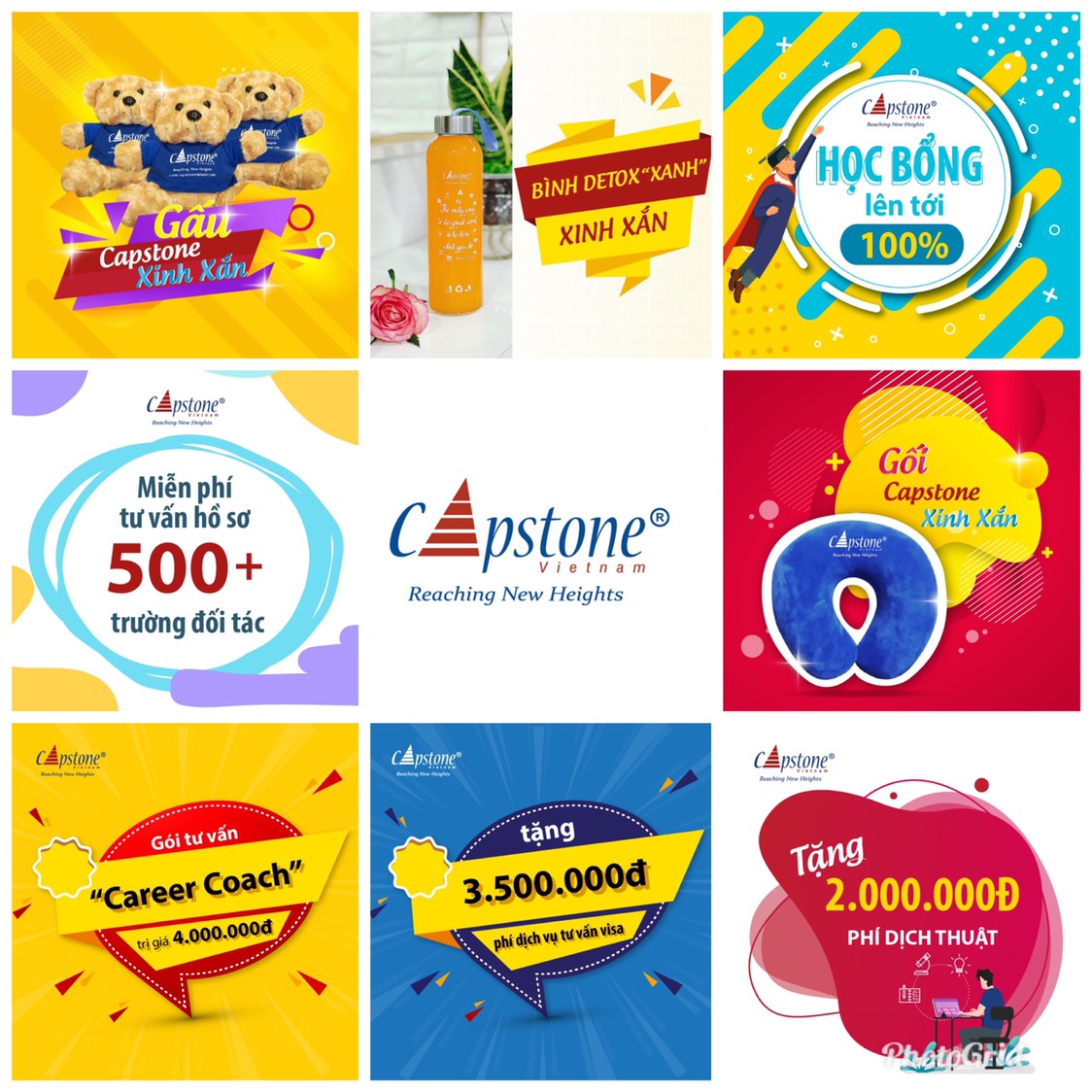 • Quà May mắn: Bình detox xanh xinh xắn, gấu Capstone, Bài kiểm tra “Career Coach” trị giá 4.000.000đ, Gấu bông & gối tựa cổ du lịch, …